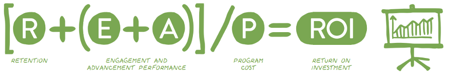 Let’s say that you’re trying to show ROI for a mentoring program aimed at increasing retention. You might use an equation similar to the example in this ebook on the ROI of mentoring: